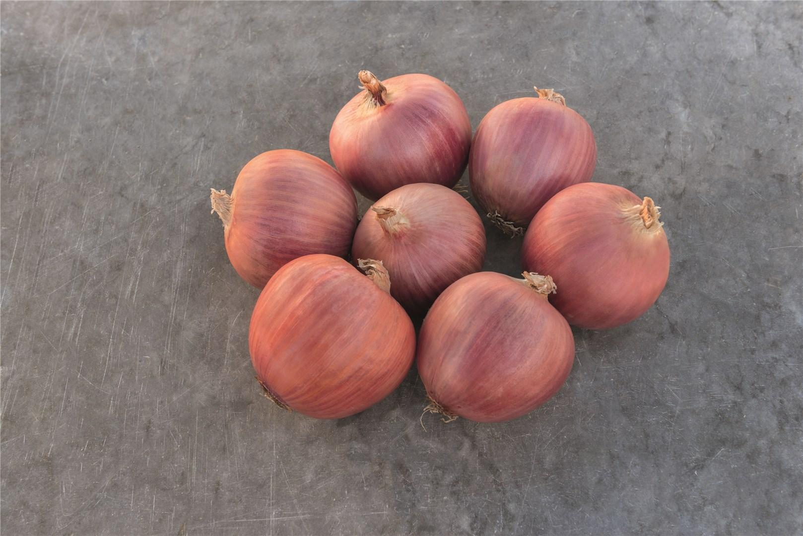 Луковицы имеют глянцевую кожицу цвета розового шампанского или коричневато-розового оттенка. Внутри мякоть имеет нежно-розовые или светло-фиолетовые кольца.